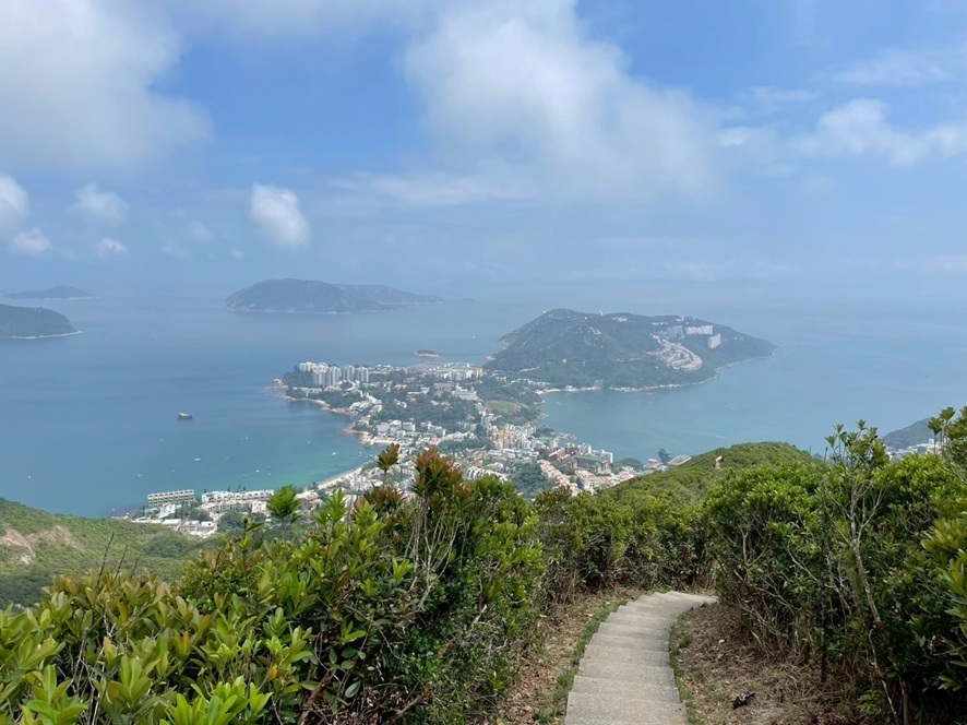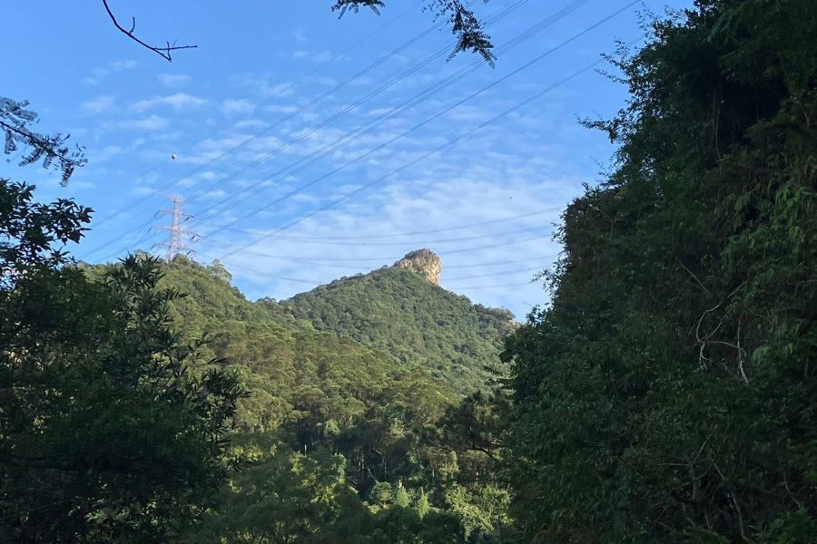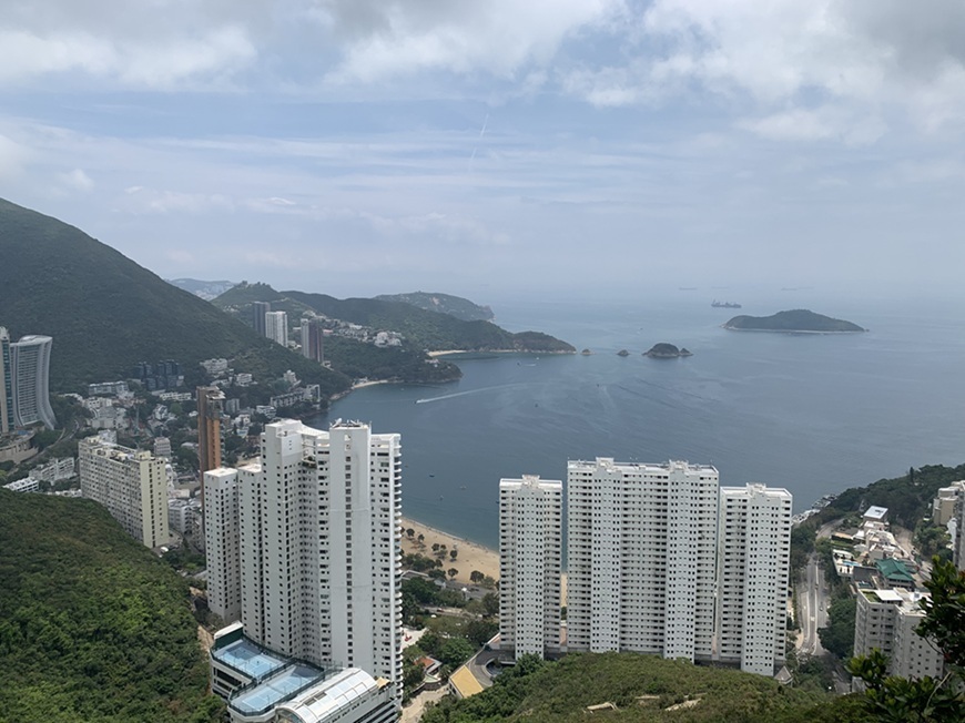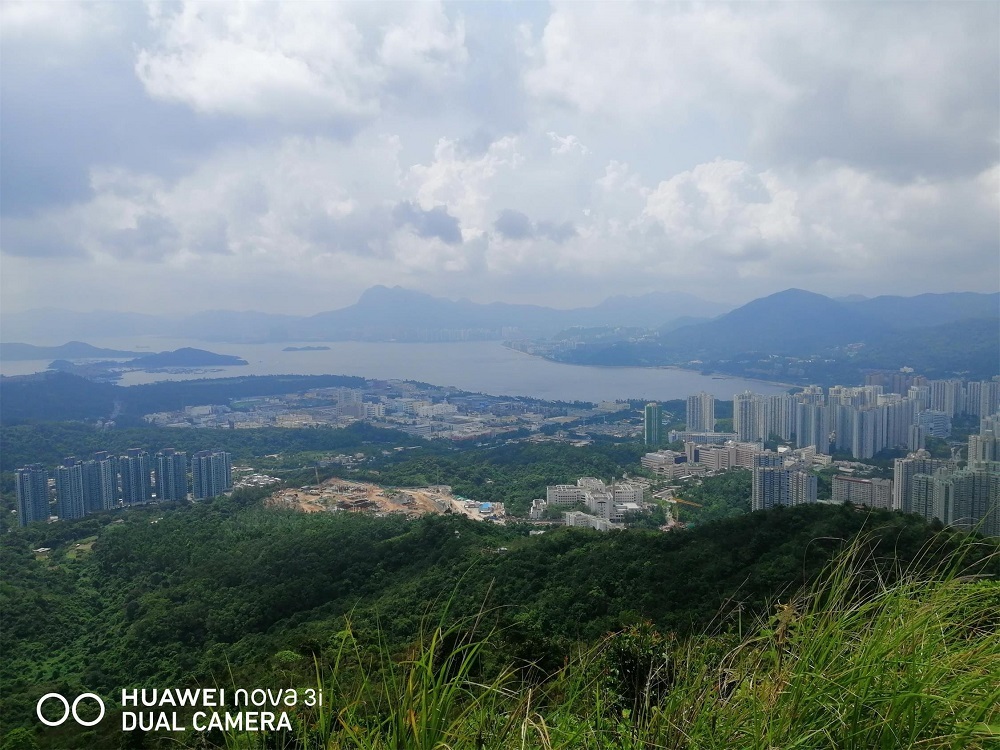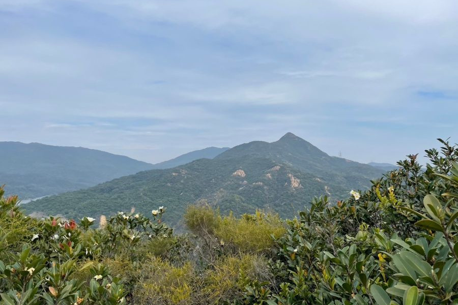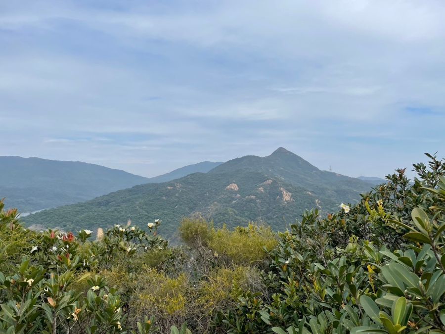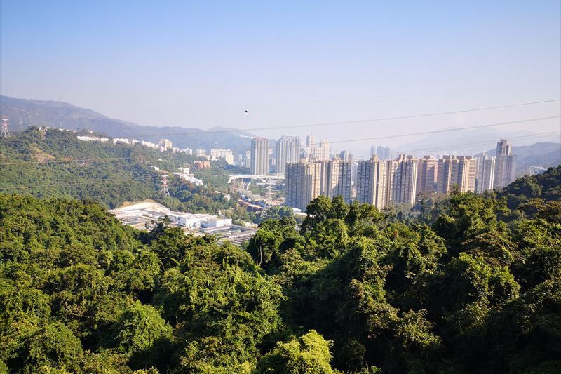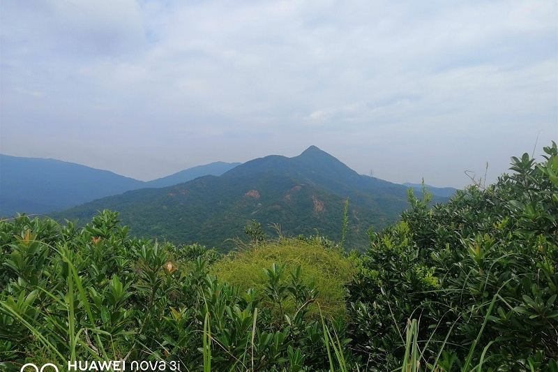 400m程登ると少し下りに入ります。毎度せっかく稼いだ標高が失われる感覚は悲しいものがありますが、これも次に飛躍するための欠かせないステップです。平頂坳の分岐から、最後の登りです。分岐に入ってすぐに蜂の巣があるのでご注意を。刺激しないようにゆっくり進みます。振り返ると既に林は抜けており、New Territoriesと深圳の景色が広がっていました。