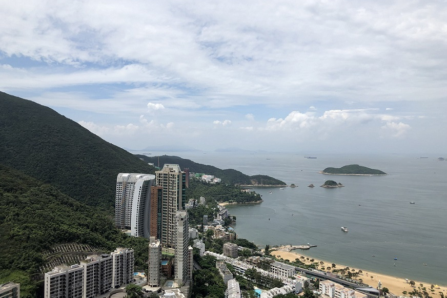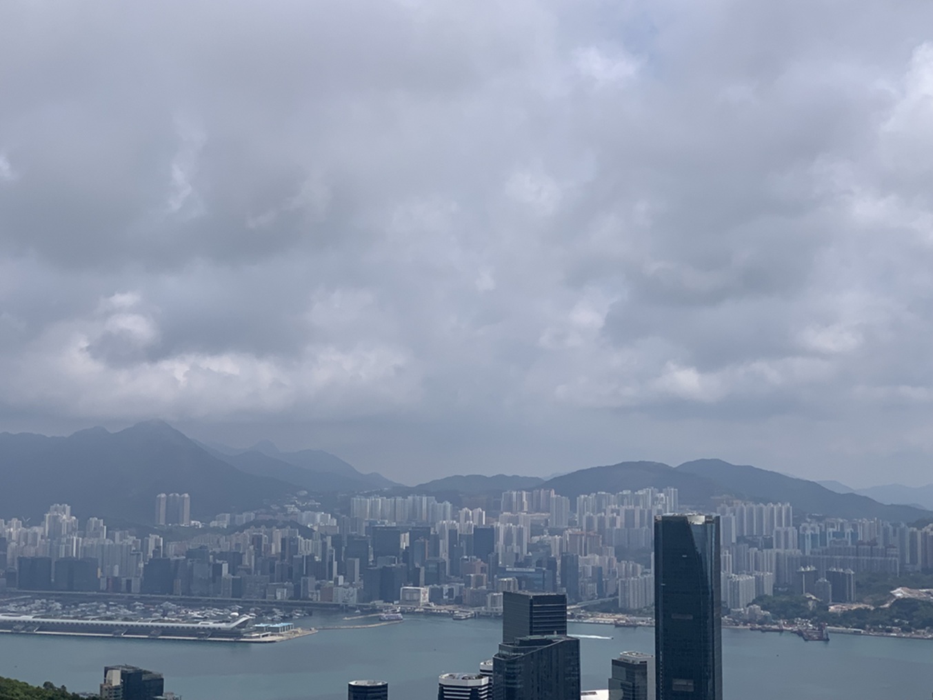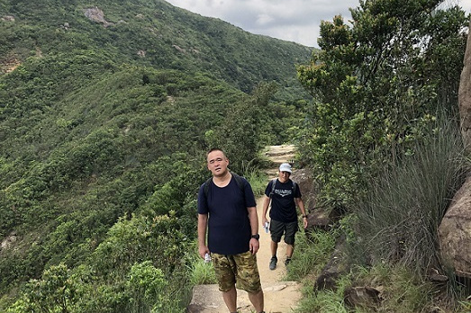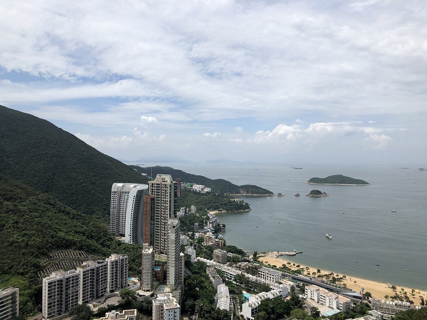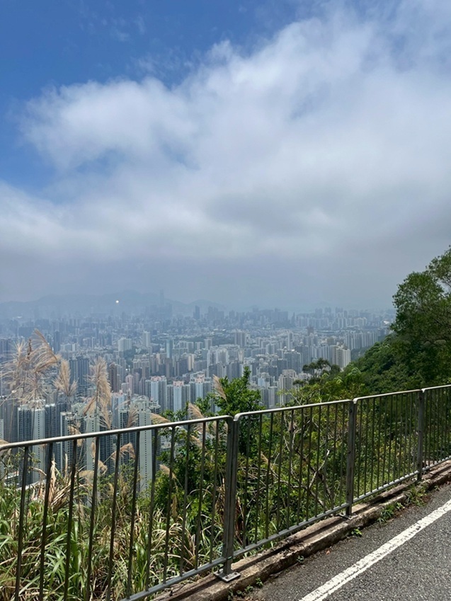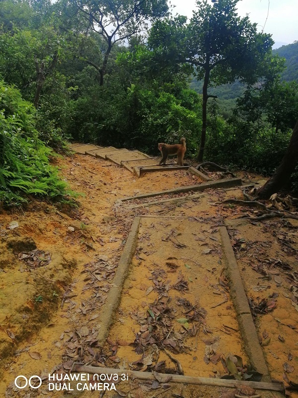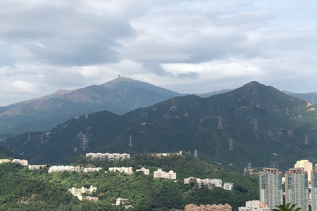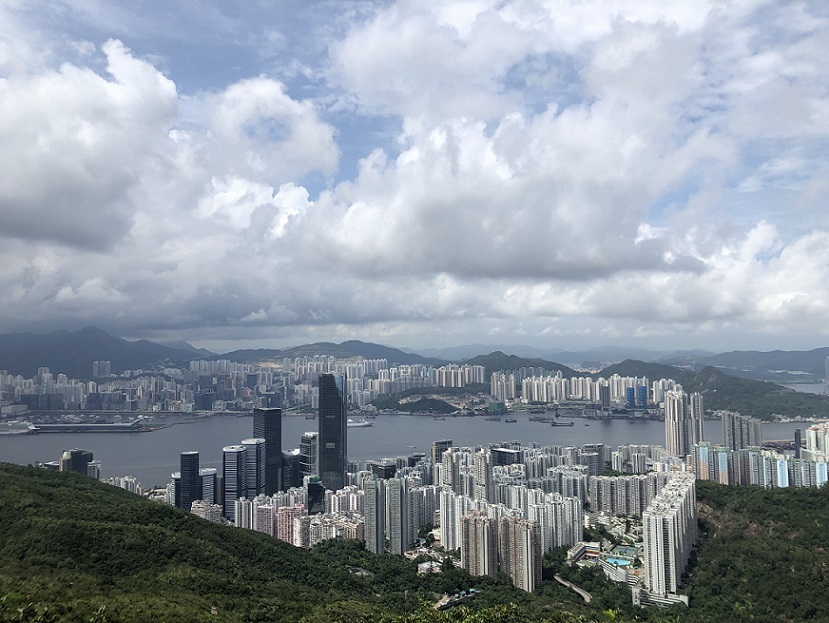 400m程登ると少し下りに入ります。毎度せっかく稼いだ標高が失われる感覚は悲しいものがありますが、これも次に飛躍するための欠かせないステップです。平頂坳の分岐から、最後の登りです。分岐に入ってすぐに蜂の巣があるのでご注意を。刺激しないようにゆっくり進みます。振り返ると既に林は抜けており、New Territoriesと深圳の景色が広がっていました。