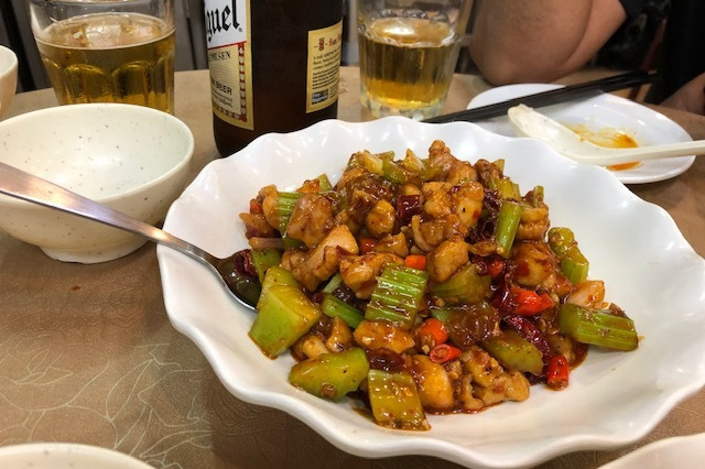 四川食堂では予定通り激辛担々麺にトライ、確かに大分辛かったです。勿論ビールで乾杯し、後は定番メニューをオーダーし、一人150ドルのマイタンでした。
