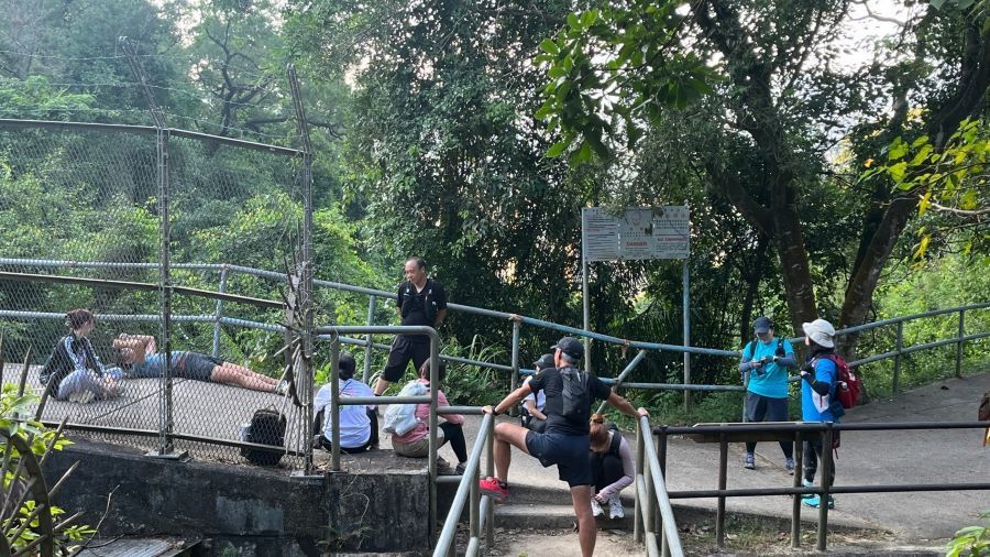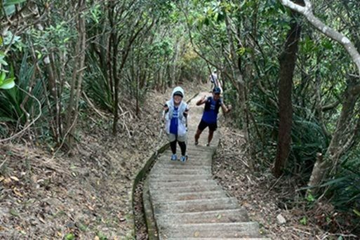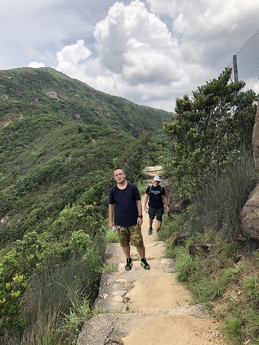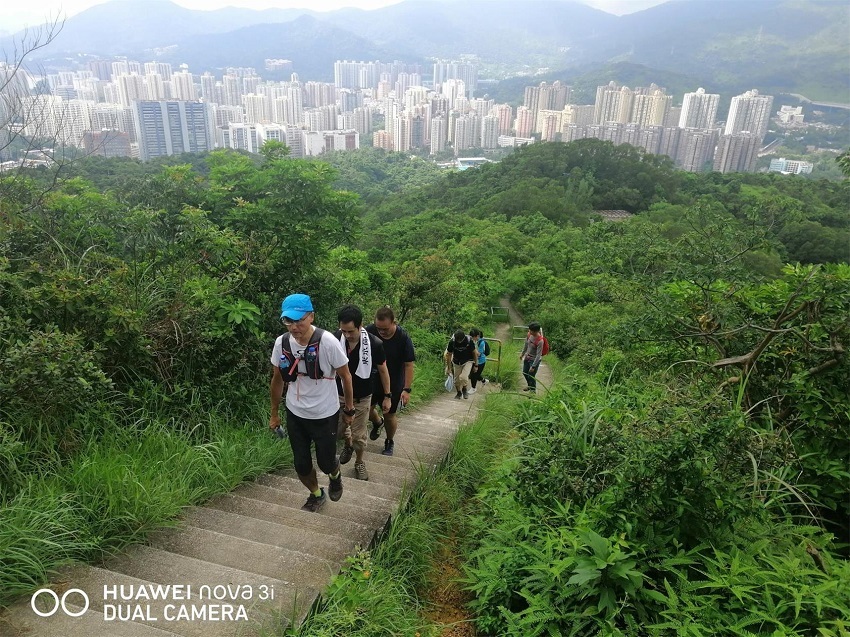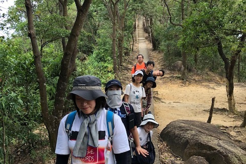 暑い日が続くので簡単で景色の良いコースを選択。10:00油塘駅A2出口に集合し、そのまま外に出てもよかったのですが、暑さと日差しを避けるべくA1出口側からショッピングモールを抜ける事にしました。太興レストラン横から道路に下り、高超道へ出ます。そこからひたすら道に沿って坂を上り、15分ほどで右側にウィルソントレイルへの階段が出現します。