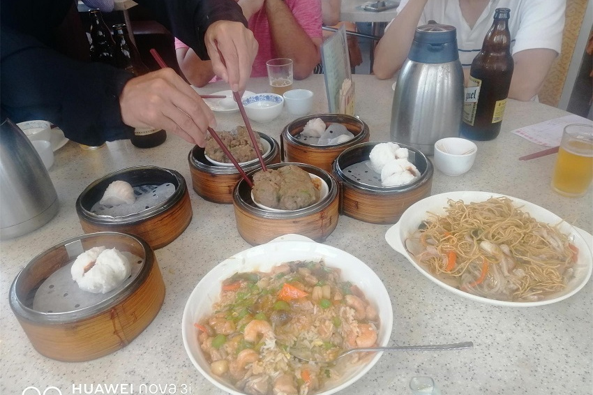 ■粉嶺駅で打ち上げ(旺記點心餐厅)腹いっぱい飲んで食べて432ドルで一人62ドルでした。