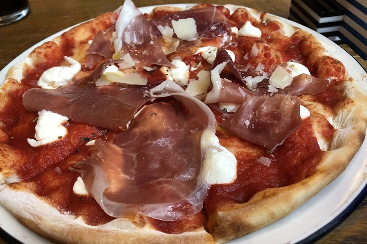 河本さんが都合で先に帰ったので、岡部さんと二人で太古のPizza Expressへ。生ハムのピザ、シーザーサラダ、コーラで乾杯をしました。(痛風の影響もあり今回はビールを自粛)