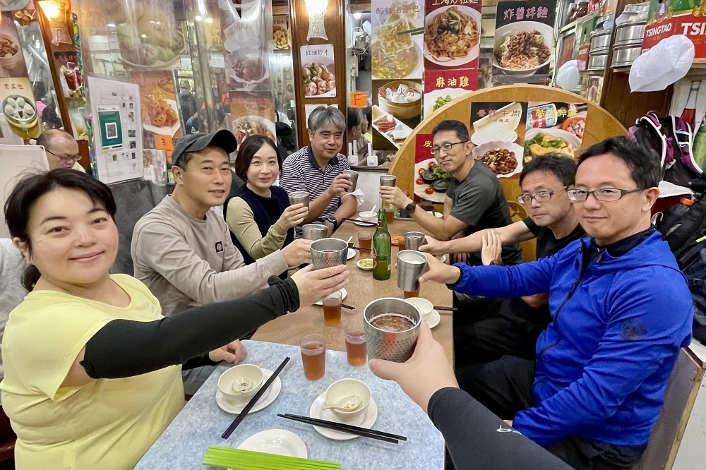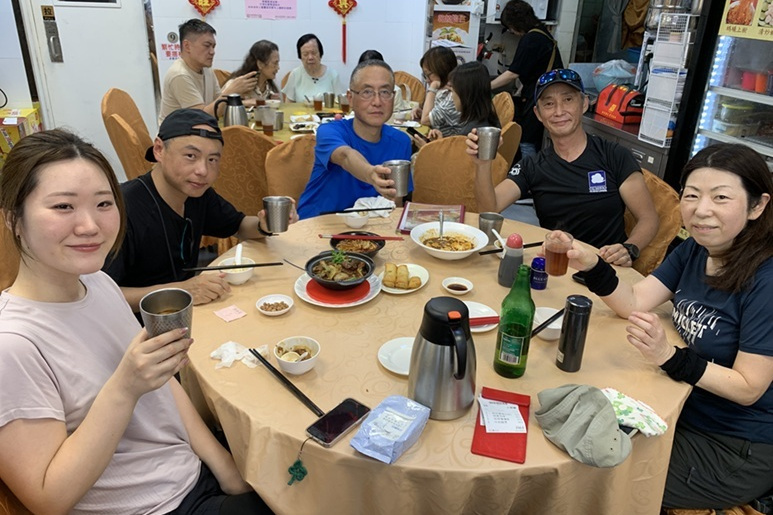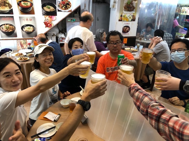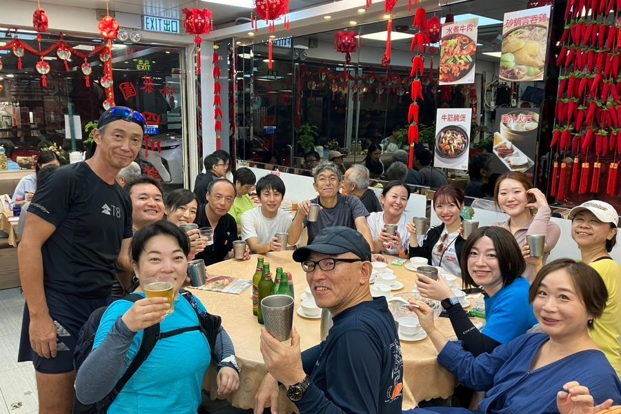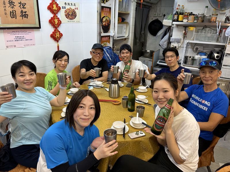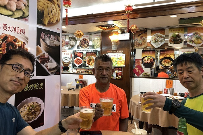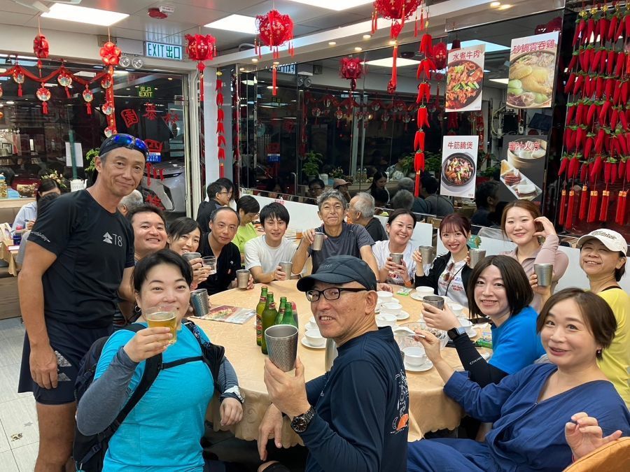 沙田パスへのショートカット階段を下り、20:30に四川食堂へ到着。打ち上げには大八木さんが合流し、楽しい酒宴となりました。