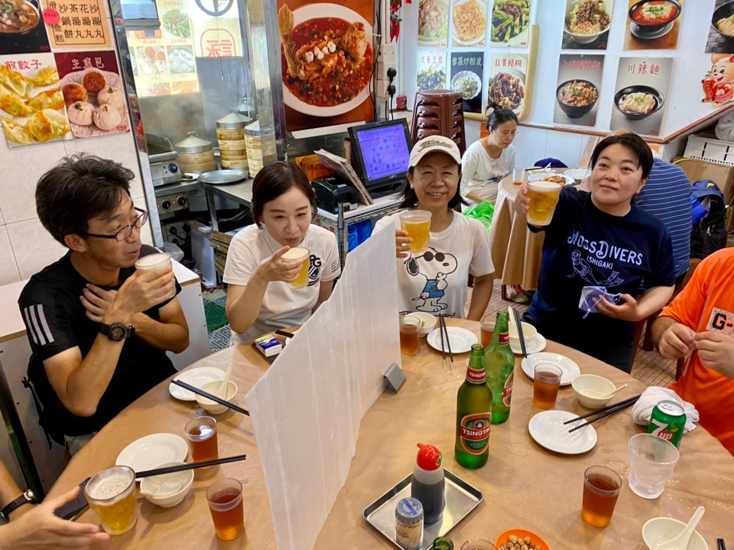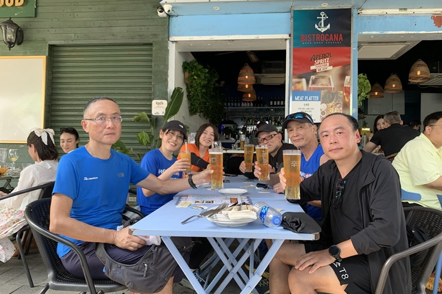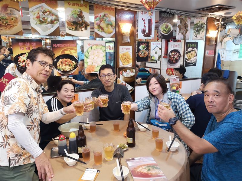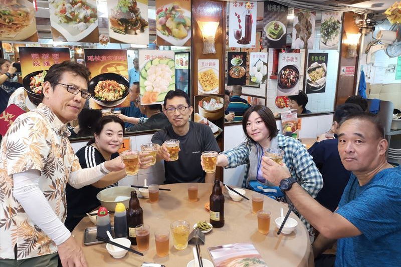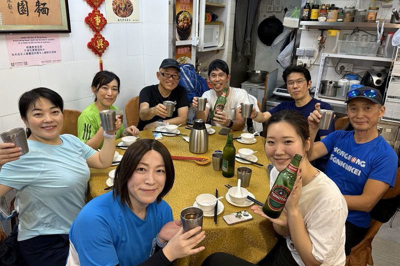 沙田パスへのショートカット階段を下り、20:30に四川食堂へ到着。打ち上げには大八木さんが合流し、楽しい酒宴となりました。