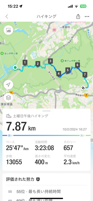 コース:ウイルソントレイル2→1逆走 (途中、黃泥湧水塘公園から紫羅蘭山(Violet Hill)を登らず、紫羅蘭山徑(Violet Hill Path)で迂回し淺水灣坳までは別ルート)