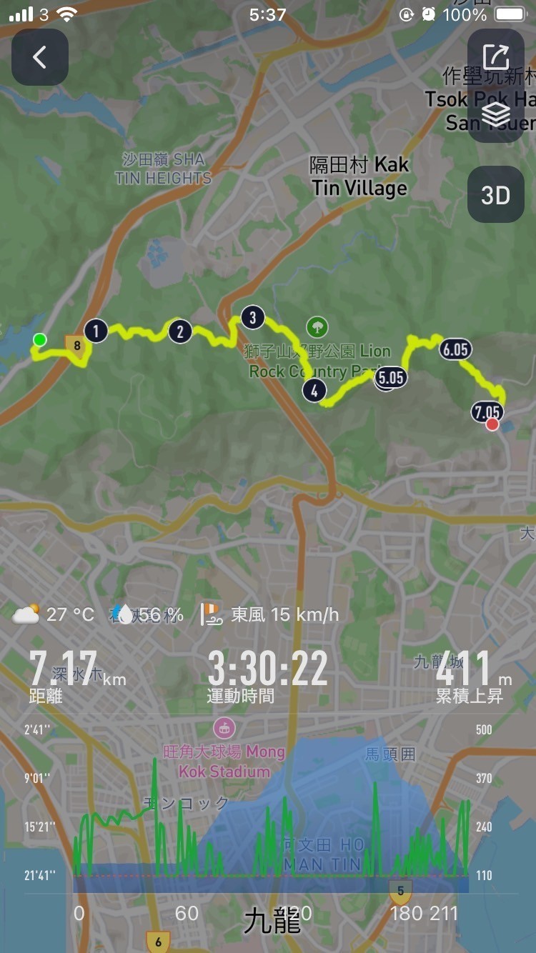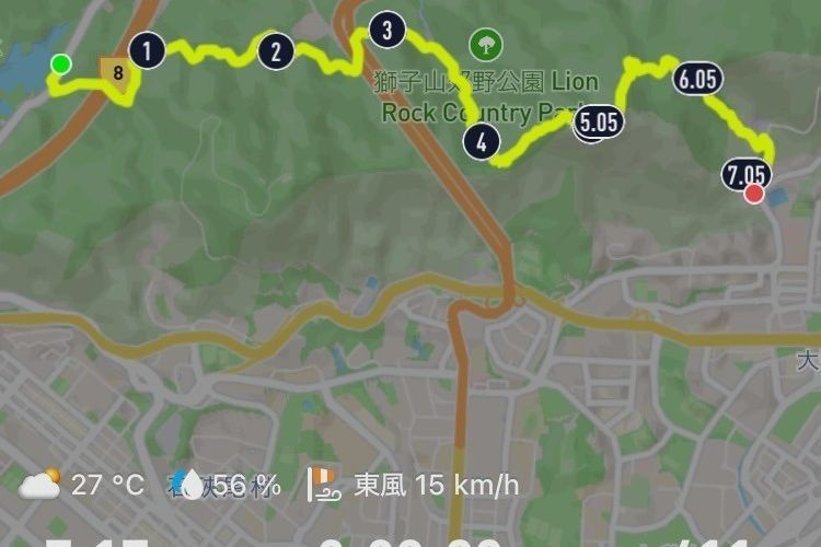 真夏のナイトハイク企画です。17:00太子駅E出口に集合し、いつもどおり81番のバスに乗り九龍水塘で下車。陸橋を渡りウィルソン5の逆走からスタートしたのが17:30過ぎ。