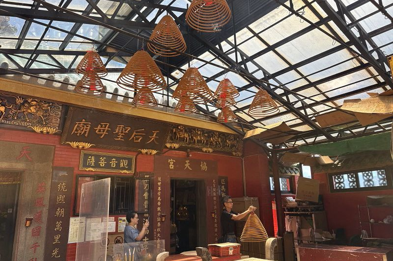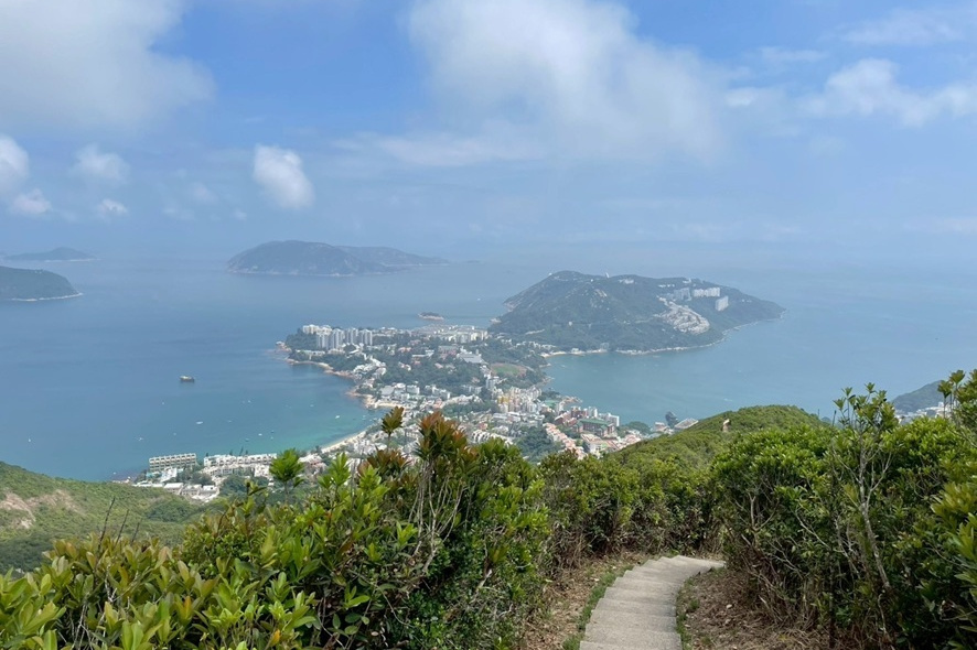 15分ほどゆっくりして下山開始。鯉魚門方面に下る道は歩きやすい階段で、香港らしい山、海、街の三拍子揃った絶景を楽しめます。再びウィルソントレイルに合流し、鯉魚門方面へ下った後、天后廟やアートな街並みを楽しんで海鮮街に12時頃ゴール。