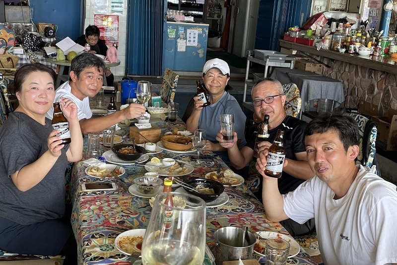 索罟灣で有名な海鮮レストランでの打ち上げです。暑い中歩いた体にビールと様々な海鮮料理が染み渡ります。