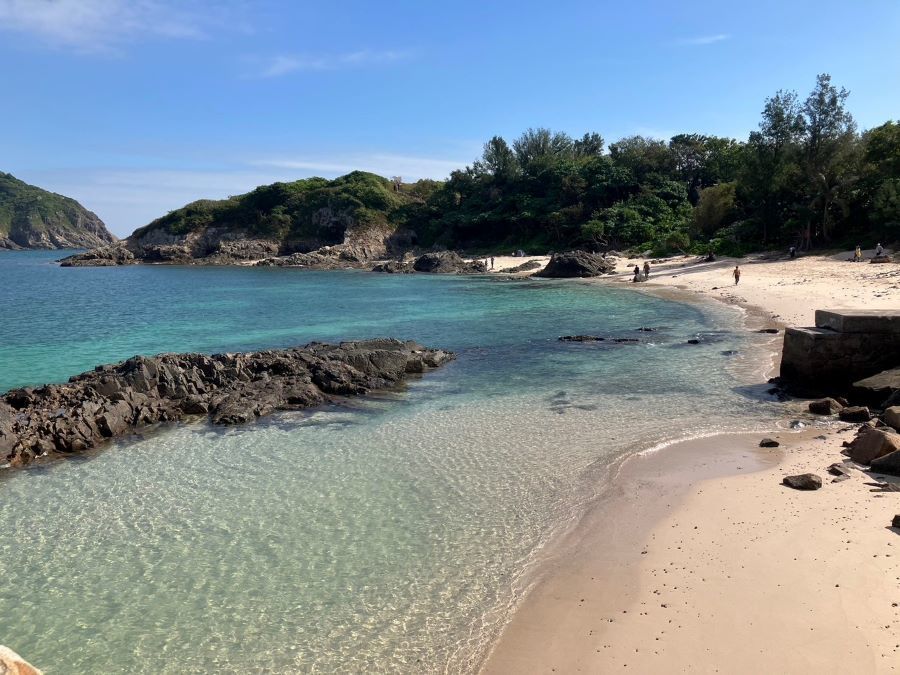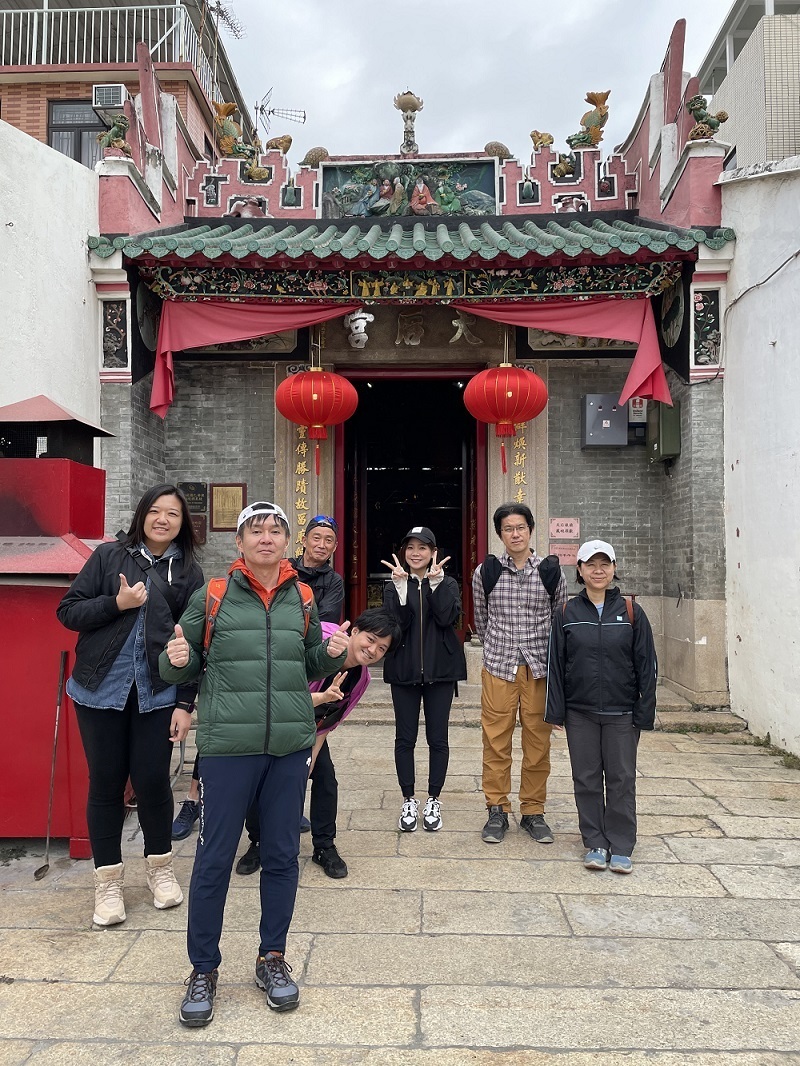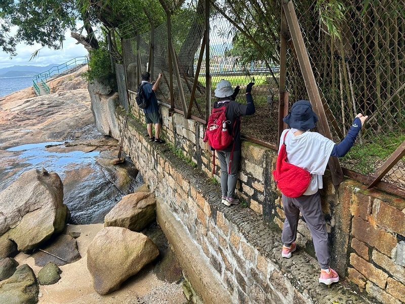 緩い下り坂に入り30分程度歩くと綺麗な東屋があり、索罟灣が見えてきます。旧日本軍が掘った洞窟や天后廟も道沿いにあり、皆で景色だけでなく歴史的な建造物も楽しめました。