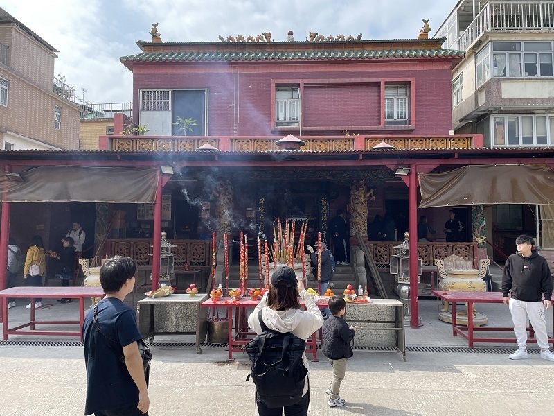 フェリーは10時に予定通り出航。いつものフェリーよりもなんだか遅く感じながらも10時半には島に到着。南の沖合には黒雲が近づいてきており足早に進み、予定通り明記海鮮酒家の予約を入れてから、まずは天后に向かう。途中雨がポツポツと降り始めた。