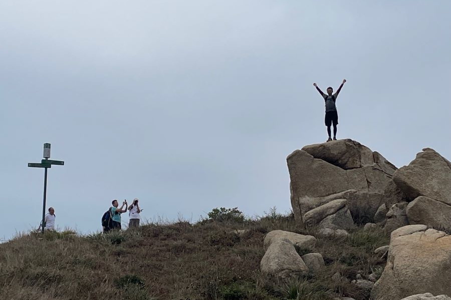 上陸後は時計回りに進んでいつもの海鮮レストランを14時に予約。そのまま天后廟にお参りしようと試みましたが、改修工事中なのか通行止めになっていて入れず、膝療養中の大八木さんとはここで一旦お別れして、看板を頼りに岩肌を登っていきます。いつもなら島らしいパノラマの絶景が拝めるのですが、お天気がイマイチだったため霧の中をお散歩。