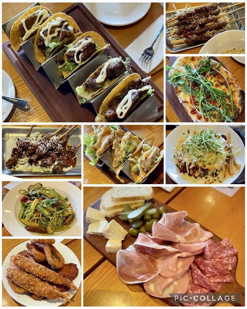 それぞれラムチョップ、ムール貝、ソーセージ、カラマリ、ローストチキン、サテー、サラダなど注文し一人$345にてマイタン。